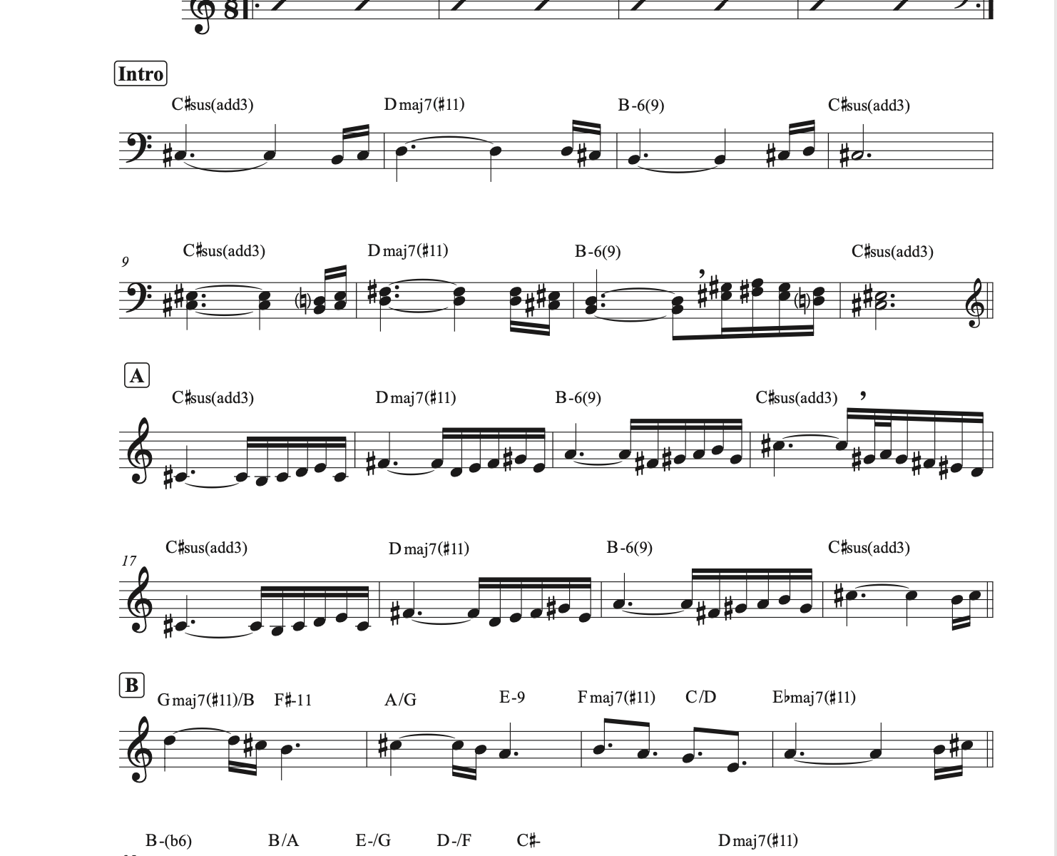 Alcázar, featured in Sergio de Miguel’s Atlántida (2023), is a flamenco-jazz composition available as sheet music in PDF format, combining clear melodic lines with contemporary jazz harmonies.