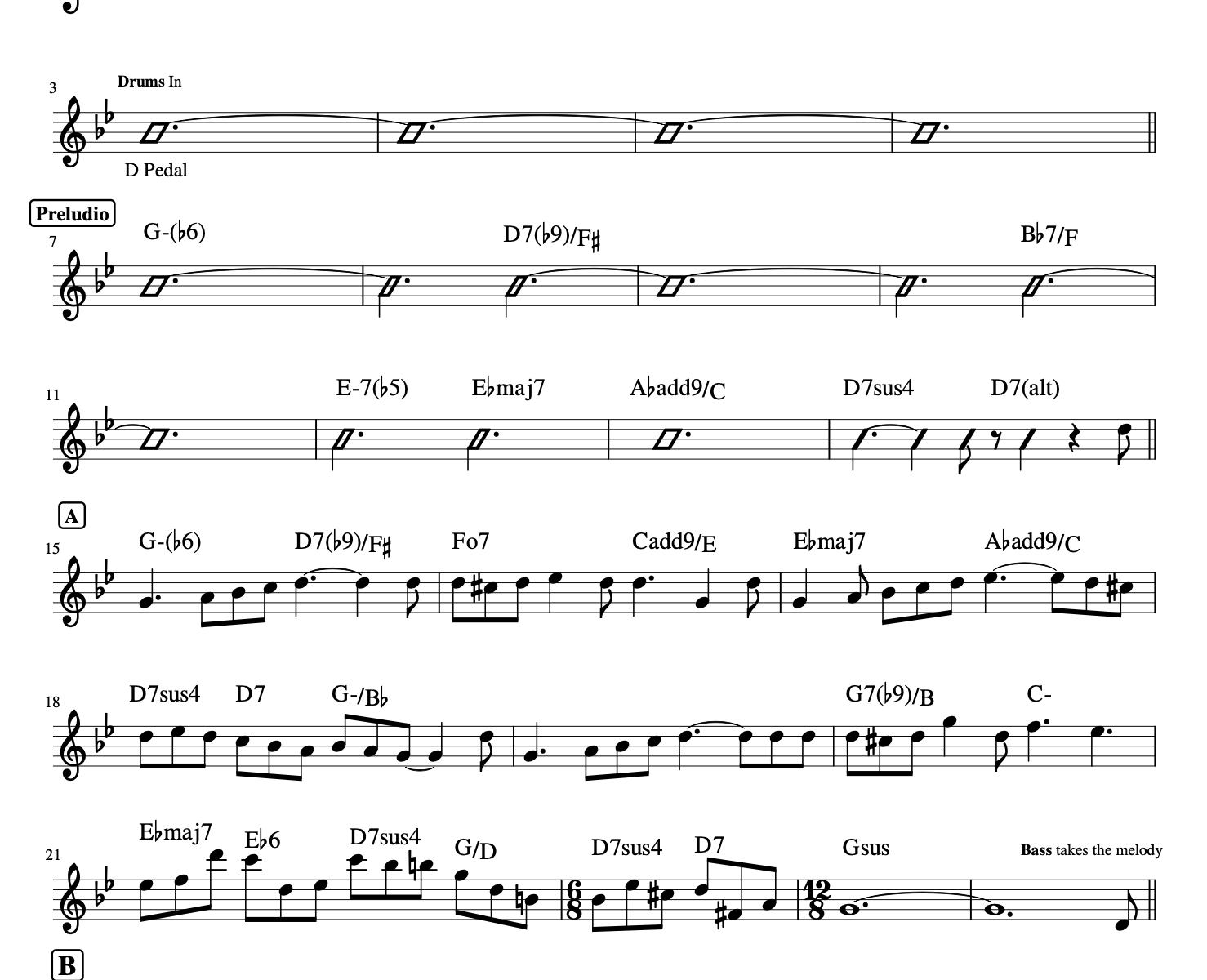 This PDF score is part of Atlántida, Sergio de Miguel’s latest project blending Galician traditions with impressionist colors, Latin American rhythms, and contemporary jazz language. Muiñeira de Chantada draws inspiration from the iconic Galician folk dance, reimagined with modern harmonies and rhythmic vitality.