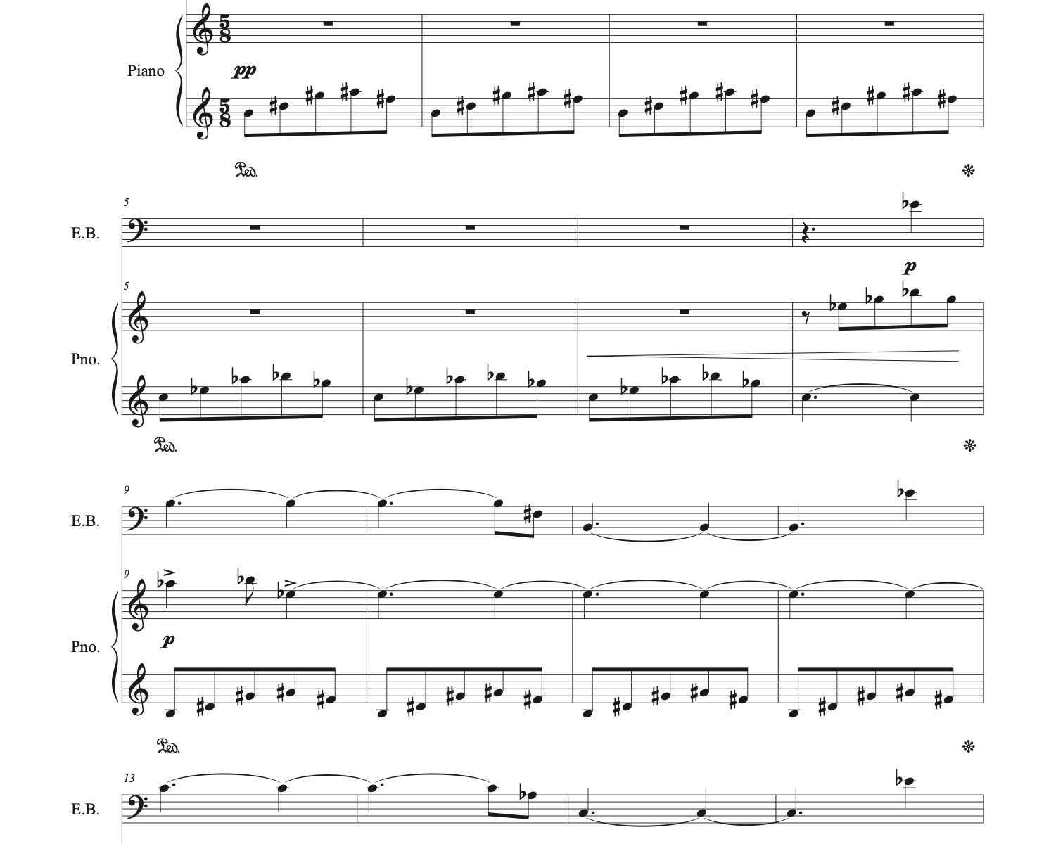 “Oasis” is an expressive composition for bass and piano by contemporary composer Sergio de Miguel, blending rich bass lines with lyrical piano melodies to create a serene and immersive musical landscape. Perfect for intermediate to advanced performers, this downloadable PDF score is ideal for recitals, recordings, or personal study and adds a modern, emotive work to any chamber music repertoire.